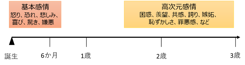 それに伴い、誇り、嫉妬、恥ずかしさ、罪悪感と言った社会生活に必要な感情が発現されるといわれています。