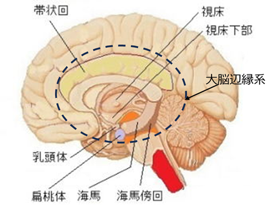 主に大脳辺縁系で基本感情が生み出されますが、その中で以下の部位が関与していると考えられています。