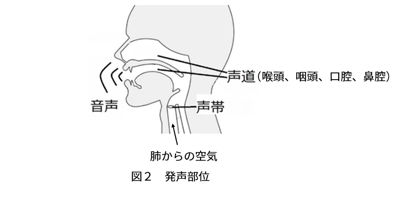声は話者の脳が肺に指令を出して肺から空気を押し出し、 声帯を振動させ音を出させます。