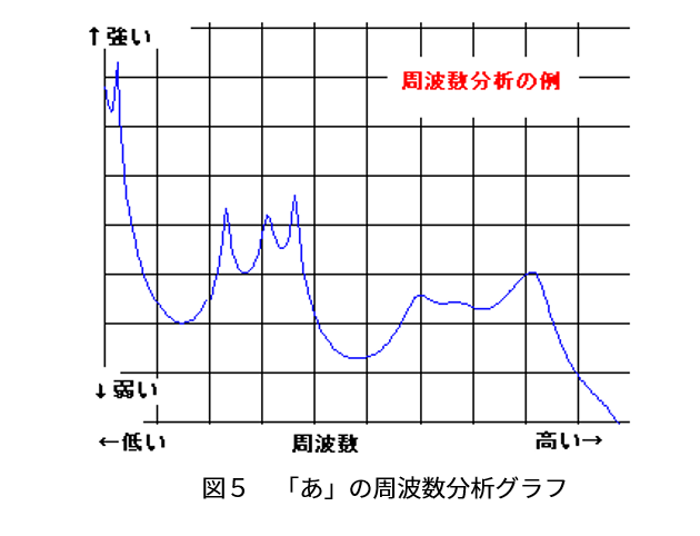 図5は「あ」という音に対して周波数とそれに対応するエネルギーの大きさをグラフにした図です。
