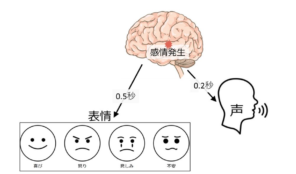 心理学者 Scherer(1986, 2003)は、感情による声の変化が表情よりも早く起こることを示しています。