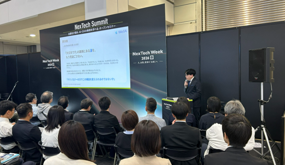 当社パートナーの株式会社WellAIが2026年4月15日(水)〜17日(金)に東京ビッグサイトで開催される「NexTech Week 2026 [春]」に参加してブース出展と講演を行いました。